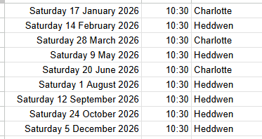 From mid-2025, all events apart from Story Time are scheduled via a vote in the WhatsApp group, so you won’t find them here. However, the old schedules below will give you an idea of the kind of stuff we do.